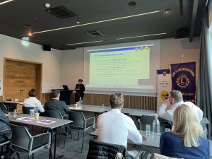 Prisotne je nagovoril guverner Vladimir Bahč, ki je skozi ves čas predavanja tudi aktivno sodeloval v razpravi in pri delu v skupinah. Predavanje je organizirala in vodila poblaščenka za odnose z javnostmi pri ZLKS Lions Slovenija, Marja Dolamič.